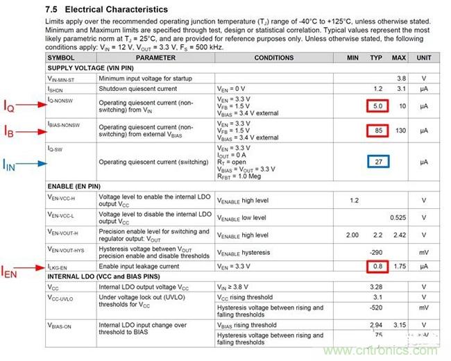 需要注意的一點是,對于LM43603來說,如表1中所示,這個數(shù)據(jù)表中所表示的是一個典型條件下的無負載輸入電流。