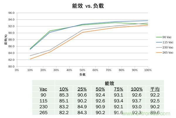 圖4. 45 W參考設(shè)計能效 vs. 負(fù)載曲線