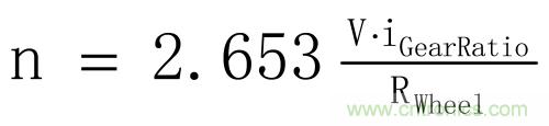 首先根據(jù)電動(dòng)汽車內(nèi)部結(jié)構(gòu),我們可以知道電動(dòng)機(jī)轉(zhuǎn)速和車速的公式: