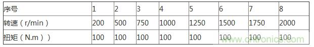 以汽車下坡或者剎車狀態(tài)舉例,我們可以按照下述表格調(diào)整轉(zhuǎn)速和扭矩進(jìn)行試驗(yàn):