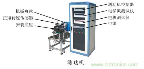 測功機的構造很簡單,由一個機柜和測試臺架組成,其中測試臺架又常稱作測功頭,一般是指扭矩轉速傳感器和制動器做成一體的款式。測試臺架包括安裝底座、扭矩轉速傳感器、機械負載(制動器),用于電機試驗時的力矩加載,模擬電機的不同工況;機柜包括電參數(shù)測試儀、電機測試儀、測功機控制器、電源等,用于對系統(tǒng)的驅(qū)動和對電機的測試。