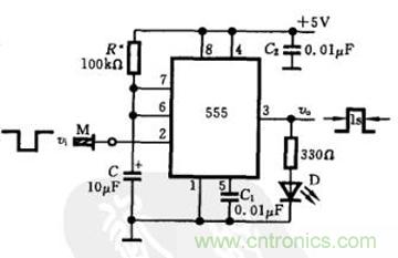 輸出脈沖延遲時(shí)間tp=1.1RC 輸出脈沖周期T0=NTi