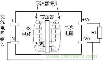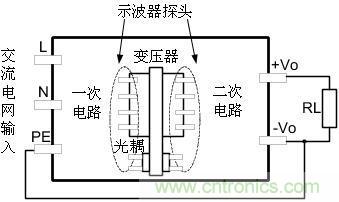 假如開關(guān)電源輸入只有L、N則測試圖如下圖2所示: