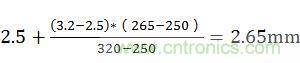爬電距離計(jì)算:按照污染等級2、材料類別Ⅲ可知265V有效值電壓在表2N的250V和320V之間,而250V時(shí)基本絕緣為2.5mm,320V的基本絕緣為3.2mm,即265V電壓基本絕緣為