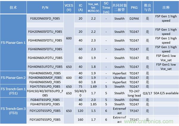 表1:安森美半導體用于HEV的分立IGBT陣容
