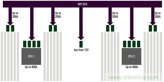圖字:48V總線;高達(dá)200A;來自12V的輔助電源