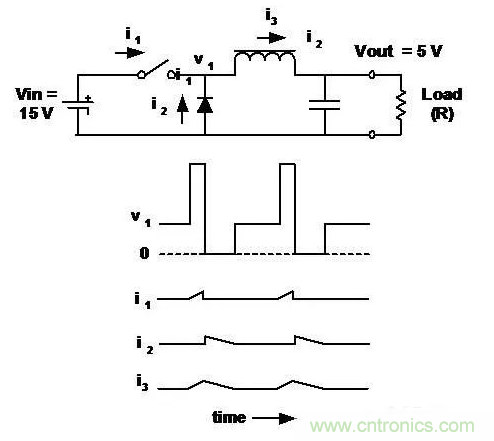輸入電流不連續(xù) (斬波), 輸出電流連續(xù) (平滑)。
