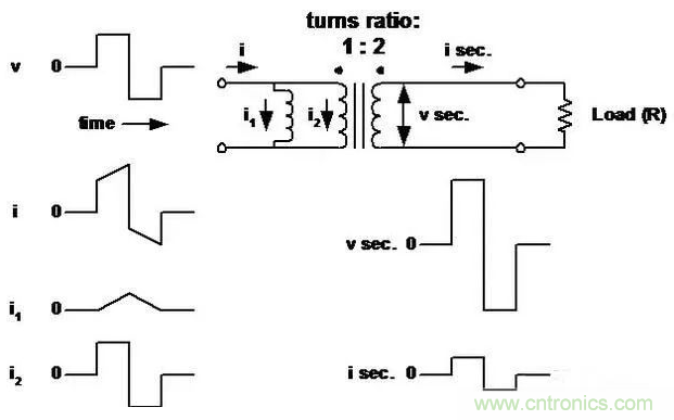 ■變壓器看作理想變壓器,它的初級(磁化)電感與初級并聯(lián)。