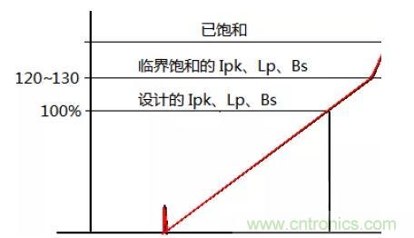 優(yōu)化方向是Bs值最優(yōu)化,約束條件是磁芯品質(zhì),可按 Bs(或原邊電感量 Lp)擴(kuò)大20%~30%余量后 Ipk 波形可見臨界飽和跡象為判據(jù)確定Bs取值。更高的Bs取值,對應(yīng)更小的氣隙、更小的漏感,更小的尖峰電壓、可能更高的整機(jī)效率。但太高的Bs取值會(huì)使上述余量更小、磁芯的品質(zhì)控制困難、成品率降低。