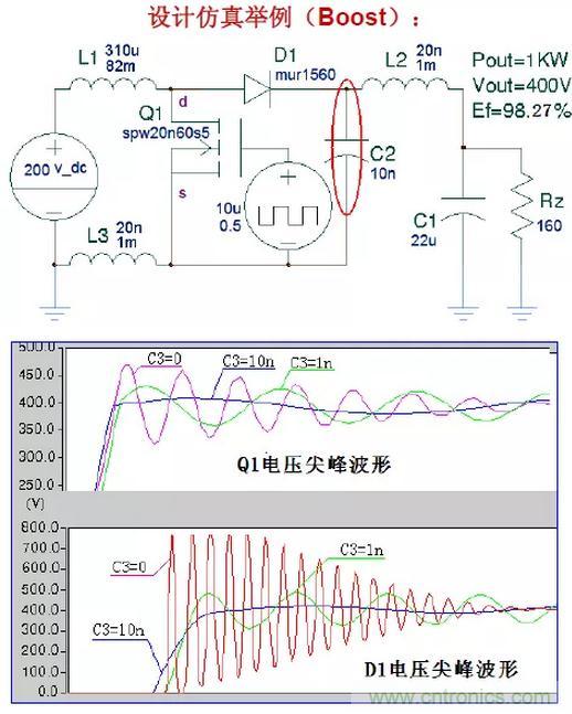引起電壓尖峰的電流可能是:拓撲電流、二極管反向恢復電流、不恰當?shù)闹C振電流等。