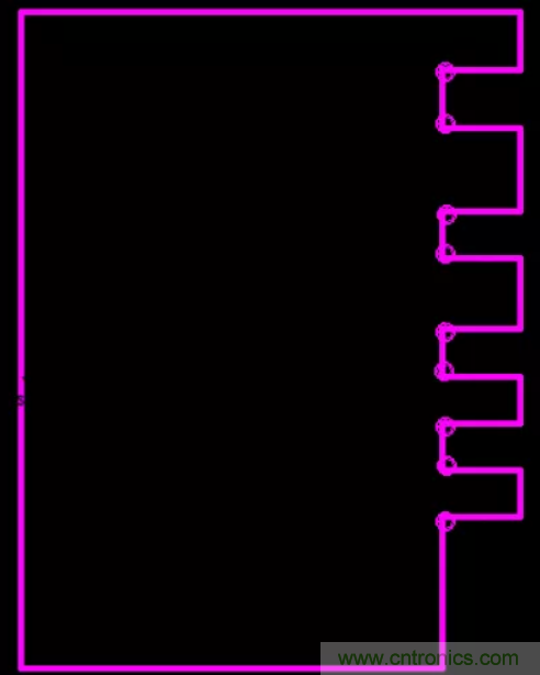 16.畫(huà)小板時(shí),在小板引腳的90度拐角處增加一個(gè)圓形鉆孔。