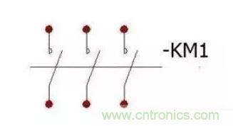 來看一下接觸器在電路中是怎樣表示的,下圖為接觸器主觸點(diǎn)在電路圖中的表示