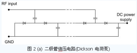 電源恢復(fù)電路將RFID 標(biāo)簽天線所接收到的超高頻信號(hào)通過(guò)整流、升壓等方式轉(zhuǎn)換為直流電壓,為芯片工作提供能量。電源恢復(fù)電路具有多種可行的電路結(jié)構(gòu)。如圖2 所示是目前常用的幾種電源恢復(fù)電路。