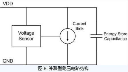 從穩(wěn)壓原理上看,穩(wěn)壓電路結(jié)構(gòu)可以分為并聯(lián)式穩(wěn)壓電路和串聯(lián)式穩(wěn)壓電路兩種。并聯(lián)式穩(wěn)壓電路的基本原理如圖6 所示。