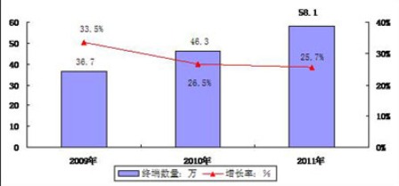 - 到2011年,中國(guó)車(chē)載視聽(tīng)系統(tǒng)終端的累計(jì)數(shù)量將會(huì)達(dá)到54.6萬(wàn)臺(tái)