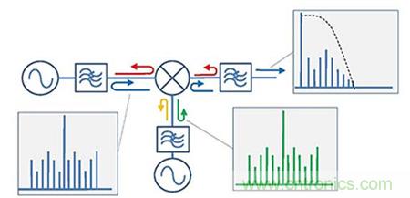 互調(diào)抑制一直是衡量混頻器設(shè)計(jì)的目標(biāo)之一?;诋?dāng)前半導(dǎo)體工業(yè)的發(fā)達(dá),我們可以通過利用高動態(tài)范圍的場效應(yīng)管成功實(shí)現(xiàn)了不同水平的互調(diào)抑制。然而,即使最好的混頻器也會在它的每個(gè)端口產(chǎn)生一些互調(diào)產(chǎn)物,并且這些互調(diào)產(chǎn)物會成為影響到周邊射頻鏈路中的因素。當(dāng)傳統(tǒng)濾波器要濾除這些互調(diào)產(chǎn)物時(shí),他們會被完全反射回到混頻器,并與基波信號重新合成而產(chǎn)生大量的假信號。這些假信號會因?yàn)榭赡苈湓谒璧念l帶內(nèi)而通過濾波器輸出到中頻,進(jìn)而限制了整個(gè)系統(tǒng)的動態(tài)范圍。