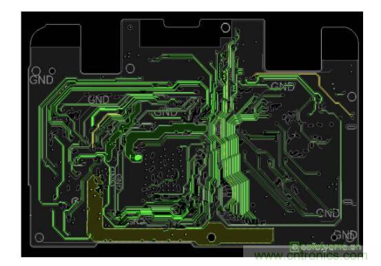 在這里由于僅GSM850的三次諧波出現(xiàn)問題,且能較快確定最強(qiáng)輻射范圍,因此無需再進(jìn)一步使用高靈敏度的磁場環(huán)形探頭進(jìn)一步精確定位。