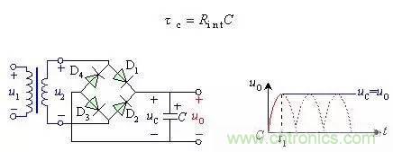 為什么整流后加上濾波電容在不帶負(fù)載時(shí)電壓為何升高?這是因?yàn)榧由蠟V波測得的電壓是含有脈動(dòng)成分的峰值電壓,加上負(fù)載后就是平均值,計(jì)算:峰值電壓=1.414×理論輸出電壓