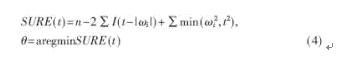 小波去噪的方法主要通過設(shè)置閾值來實(shí)現(xiàn),對(duì)漏磁信號(hào)的離散小波變換,計(jì)算所有小波系數(shù),剔除被認(rèn)為與噪聲有關(guān)的小波系數(shù),然后通過小波變換的逆變換得到信號(hào)。對(duì)于給定的信號(hào),選取閾值的方法很多,本文使用的是基于Stein無偏風(fēng)險(xiǎn)估計(jì)值最小化(SURE)的方法: