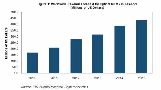 據(jù)IHS公司的最新MEMS市場(chǎng)研究報(bào)告,由于市場(chǎng)對(duì)寬帶互聯(lián)網(wǎng)服務(wù)的需求持續(xù)激增,預(yù)計(jì)2011年以及隨后幾年光MEMS銷(xiāo)售額強(qiáng)勁增長(zhǎng)。光MEMS是超高速光纖網(wǎng)絡(luò)中的關(guān)鍵部件。