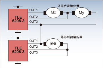 圖4: 采用TLE6208-3的后視鏡電機驅動的例子。