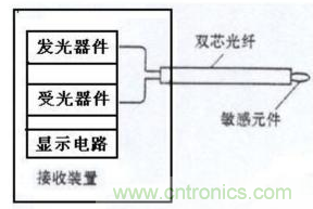 圖3(a)所示為光纖液位傳感器的基本結(jié)構(gòu)。這種傳感器的敏感元件和傳輸信號(hào)的光纖均由玻璃纖維構(gòu)成,故有絕緣性能好和抗電磁噪聲等優(yōu)點(diǎn)。