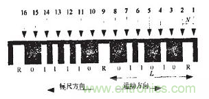 根據(jù)磁敏傳感原理,“凹槽”和“凸槽“會導致不同的磁場強度,從而使磁敏元件相應地輸出不同的電半信號“0”或“1”,形成數(shù)值碼,用于確定位移的粗讀值;而標志位R碼寬兩倍于碼元“1”寬度的特點,使得識別后的序列出現(xiàn)具有固定特征的標識碼,它用于精讀數(shù)。