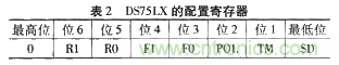 DS75LX的配置寄存器如表2所示,該寄存器可讀/寫,允許用戶選擇不同功能。這些功能包括報(bào)警輸出類型、溫度測量分辨率等。