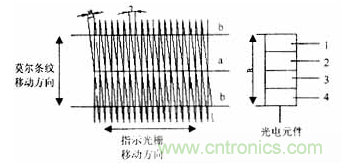 光柵作為精密測(cè)量的一種工具,由于他本身具有的優(yōu)點(diǎn),已在精密儀器、坐標(biāo)測(cè)量、精確定位、高精度精密加工等領(lǐng)域得到了廣泛的應(yīng)用。光柵測(cè)量技術(shù)是以光柵相對(duì)移動(dòng)所形成的莫爾條紋信號(hào)為基礎(chǔ)的,對(duì)此信號(hào)進(jìn)行一系列的處理,即可獲得光柵相對(duì)移動(dòng)的位移量。將光柵位移傳感器與微電子技術(shù)相結(jié)合,進(jìn)行線性位移量的測(cè)量,以實(shí)現(xiàn)較高的測(cè)量精度。
