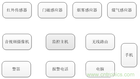 圖2:家庭監(jiān)控系統(tǒng)經(jīng)典方案組成
