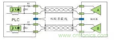 主要用于硬件高速計數(shù)器(HHSC)的輸入使用,接口電壓為5VDC,在應用上為確保高速及高噪音抗性通常采用雙線驅動方式(Line-Drive)。如果工作頻率不高與噪音低也可以采用5VDC的單端SINK或者SRCE接法,串聯(lián)一個限流電阻轉換成24VDC的單端SINK或者SRCE接法。